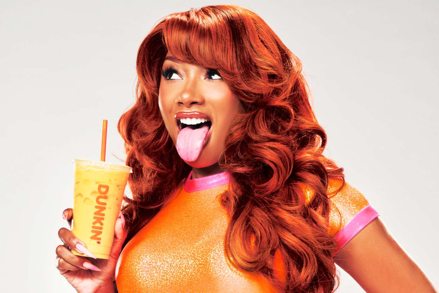The drinks anchor Dunkin’s high-energy “Dunk N’ Pump” campaign, which introduces Megan as “Pro-Tina,” a playful spin on her iconic alter ego. In the spot, she leads a jazzercise-inspired workout fueled by Protein Refreshers, set to an original track she created exclusively for the campaign. If the choreography looked intense, that’s because it was. “The video was a workout,” Megan laughs. “I’m really in the gym!”