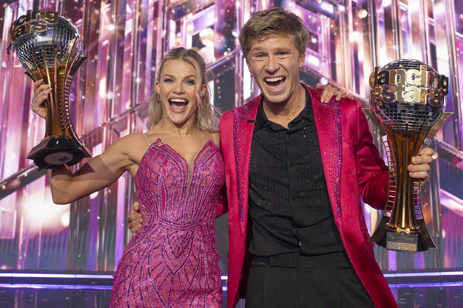 An elated Robert Irwin and Witney Carson sparkle after winning season 34 of Dancing with the Stars in Los Angeles on Nov. 25.