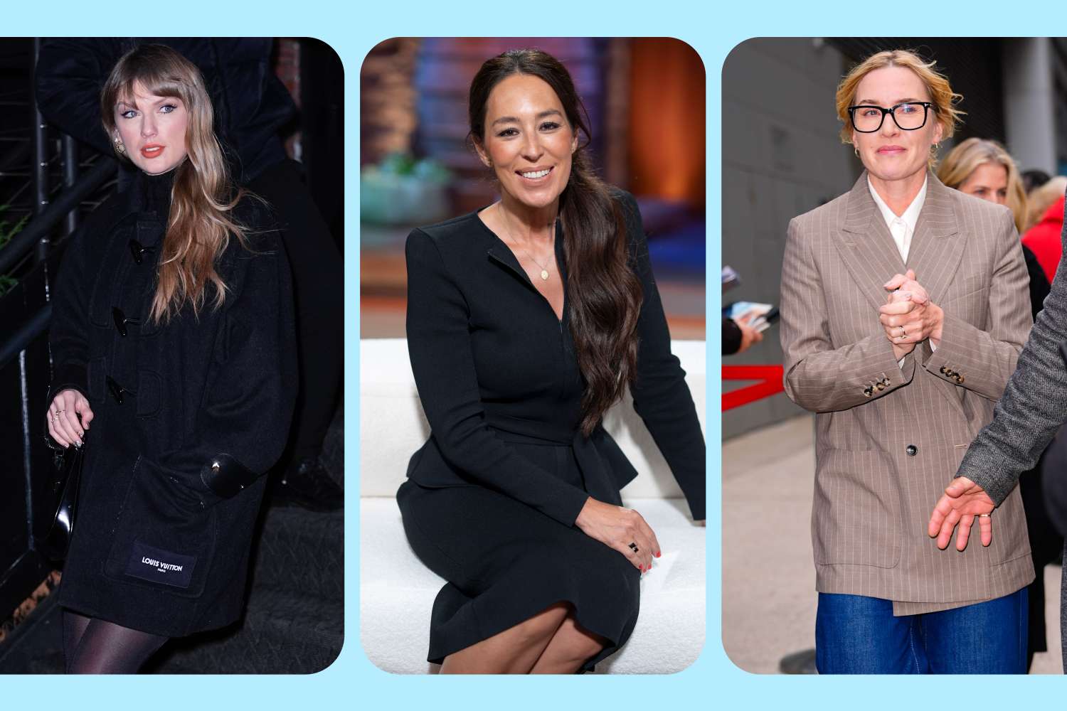 While cheering on fiancé Travis Kelce recently, Taylor Swift wore the $258 Agolde Low Slung Baggy Jeans in dark gray, while Joanna Gaines posted a fun Instagram Reel in medium blue, wide-leg jeans with a light brown sweatshirt. And in New York City, Kate Winslet rocked a pair of dark blue trouser jeans with a long, striped blazer and brown boots.