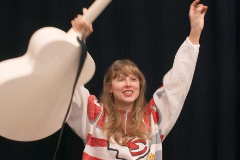 “You got the game on?” Swift asked as she entered her dressing room in a Chiefs sweatshirt.