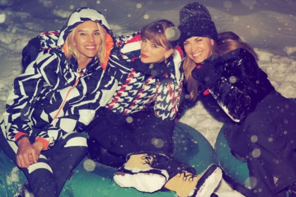 The snap, believed to have been taken on the snowy getaway during the NFL offseason, showed Swift sitting on a green rubber ring in the show, wearing a colorful jacket and snow boots.