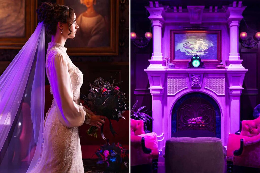 Beginning May 14, 2026, sailing out of Fort Lauderdale, Florida, guests can tie the knot at the Haunted Mansion Parlor, a delightfully spooky venue that was inspired by a first-class drawing room from a classic cruise liner. The ornately decorated spot features deep purple wallpaper, cobwebs hanging from corners, and shifting portraits that make you wonder if you’re seeing things.