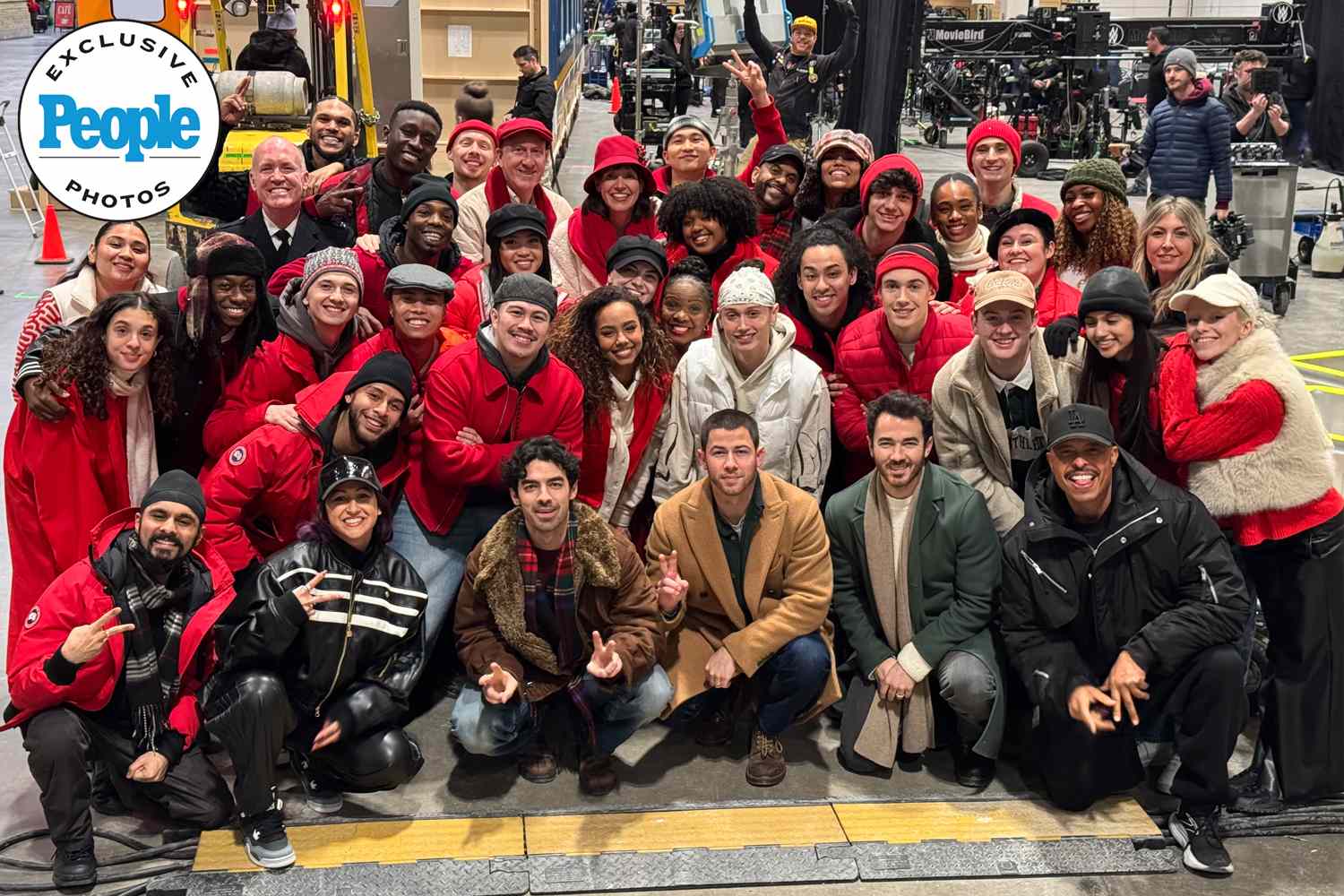 “They didn’t have a lot of time,” he says of Kevin, Joe and Nick’s busy schedules while filming the holiday movie. “Because when we were shooting this movie, they had just got off the road. So they got there the day before we started shooting, maybe two days prior, and I got them in for a couple of hours, but I never really got a good chunk of rehearsal time with them. So I knew that it was up to me to really make it really concise and not too complex, because we just didn’t have a lot of time.”