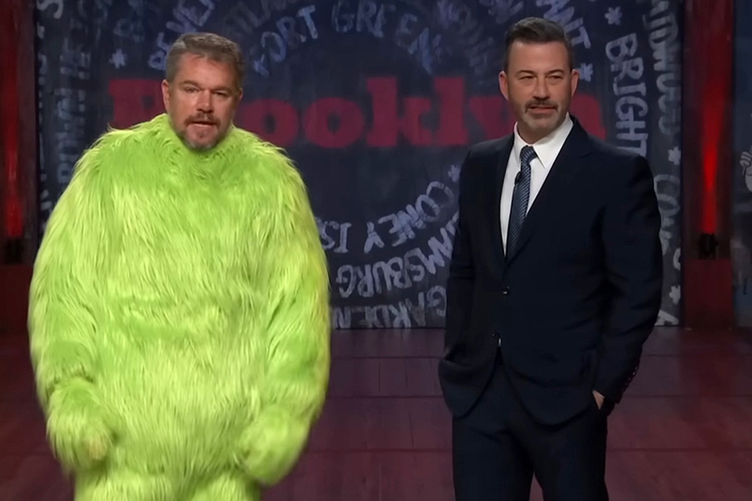 Before long, Kimmel realized that someone much more menacing was under the mask of the creature he deemed a “hot green sewer Labubu.” After a little scuffle, he pulled off the mascot’s head to reveal none other than the Jason Bourne star.