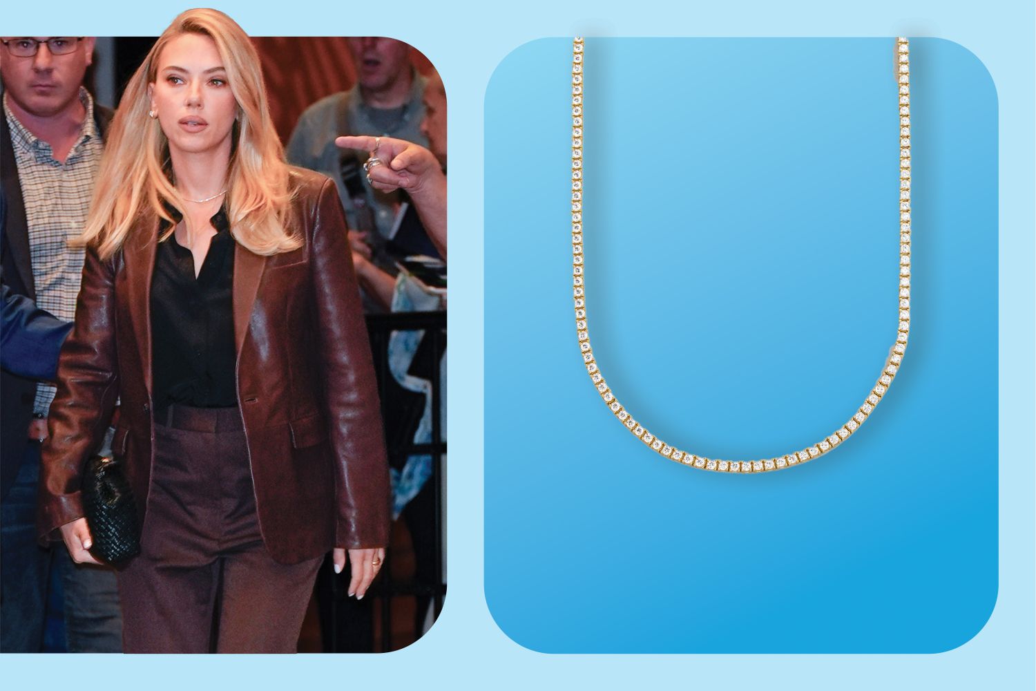 To be specific, Johansson wore the twinkling Billie 18K Gold Tennis Necklace around her neck — and it costs less than $160.