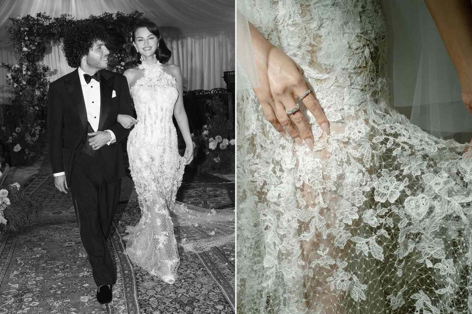 One of the images shared by Gomez included a close-up of her lace halter neck gown, which features a heart embroidered with the couple’s initials.
