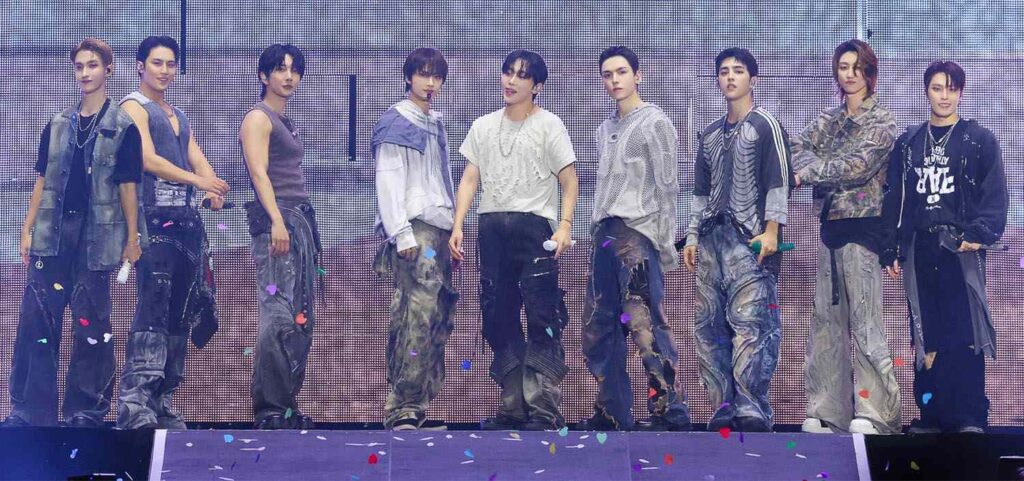 The festive vibes all came to a head at BMO Stadium during back-to-back concerts, where the normally 13-member group performed as nine (four are currently enlisted in Korea’s mandatory military service) for about 20,000 fans each night. For the first time, the set list included nine solo performances — from S.Coups, 30, Joshua, 29, Jun, 29, DK, 28, Mingyu, 28, The 8, 27, Seungkwan, 27, Vernon, 27, and Dino, 26 — of songs featured on their latest album, Happy Burstday.
