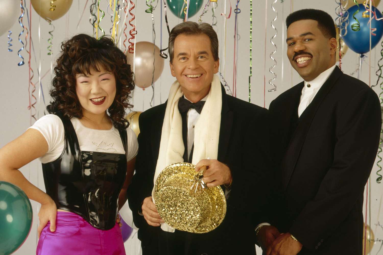 Dick Clark posed with Margaret Cho and Steve Harvey, who co-hosted with him in 1994.