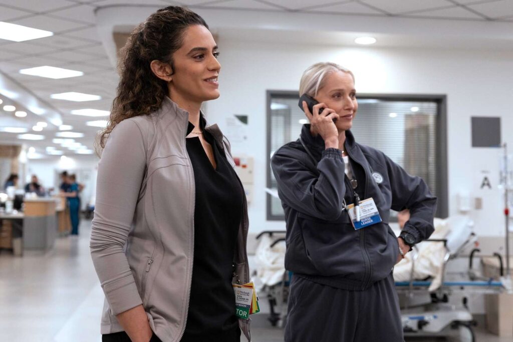While Dr. Robby (Noah Wyle) and Dr. Al-Hashimi (Sepideh Moafi) kick things off by placing competing bets on what’s happening at Westbridge, Dr. Santos (Isa Briones) attempts to catch up on her charting between seeing patients. Meanwhile, Dr. Langdon (Patrick Ball) opens up to a patient about his life outside of the hospital.