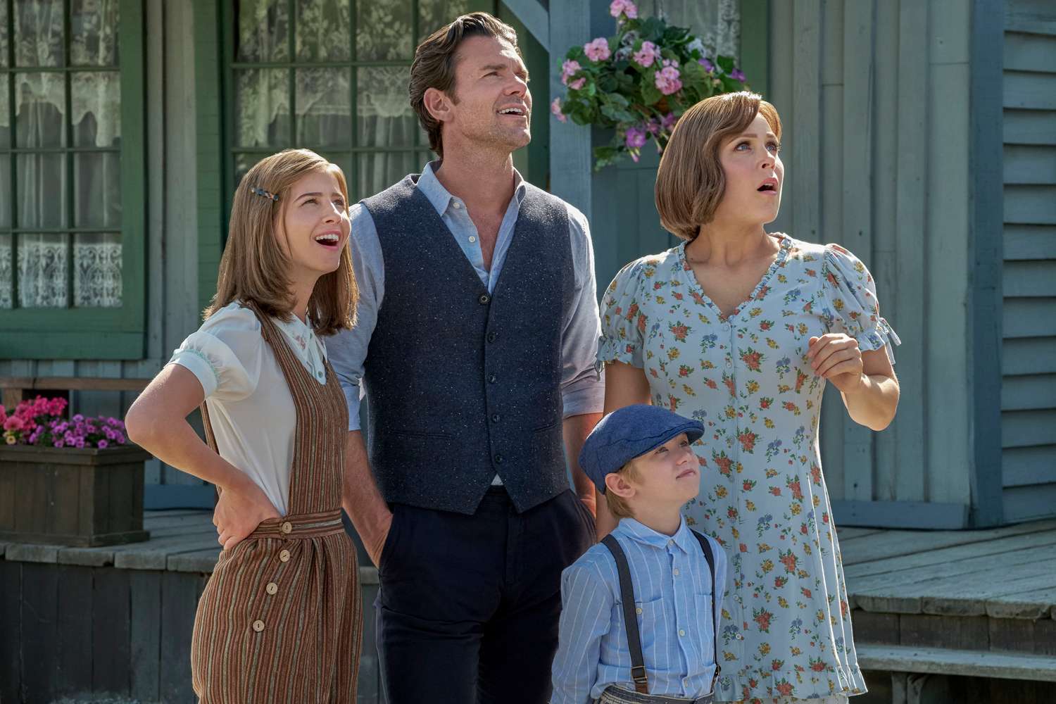 As the announcer says, “the moment you’ve been waiting for,” Elizabeth and Nathan appear to be going for a romantic walk without their kids, Little Jack (Hyland Goodrich), Elizabeth’s son with her late first husband, and Nathan’s niece / adoptive daughter Allie (Jaeda Lily Miller).